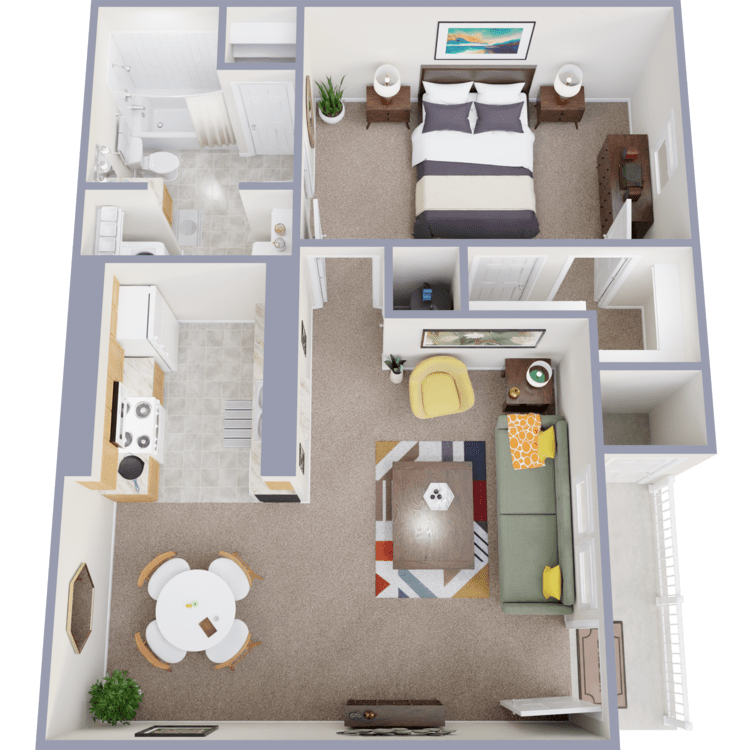 Discover our one, two, three, and four bedroom apartments for rent, each featuring personal patios or balconies, spacious closets, dishwashers, and ample storage. Select units offer vaulted ceilings and ceiling fans for added luxury.
